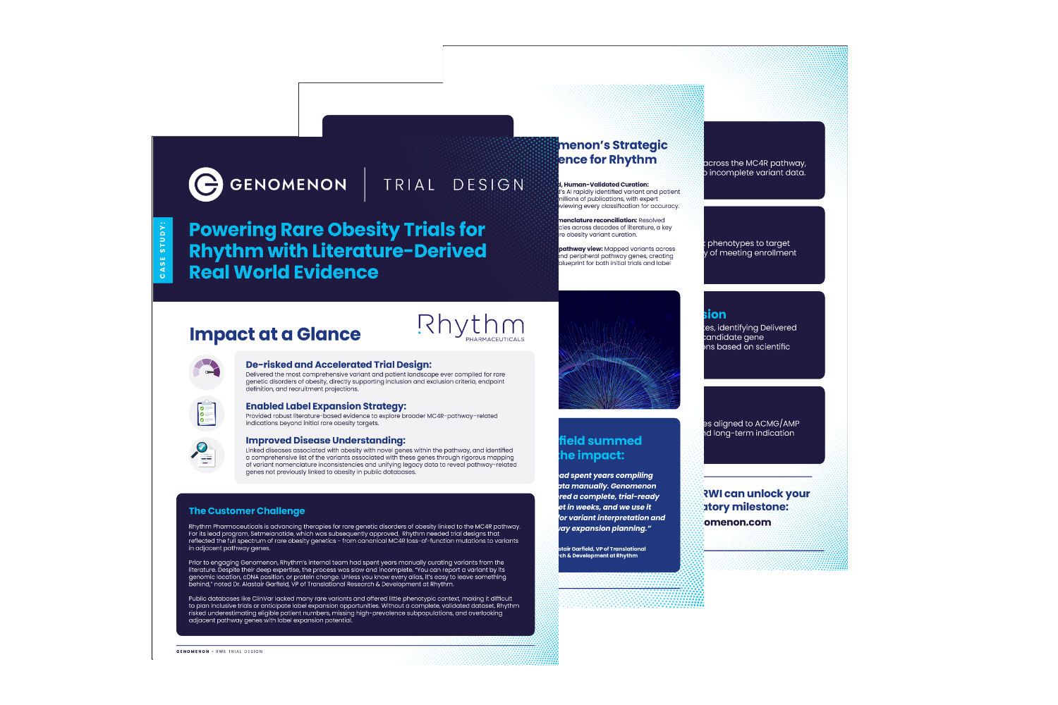 Delivered the most comprehensive variant and patient landscape ever compiled for rare genetic disorders of obesity, directly supporting inclusion and exclusion criteria, endpoint definition, and recruitment projections.